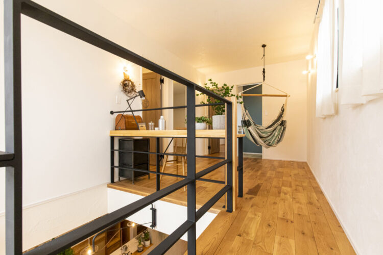 2階のファミリースペースは広々として、ハンモックや、ソファーを置いて第二のリビングとして使っていただけます。