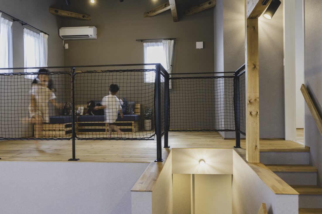 家族が集まりやすいよう、中心の1.5階にLDKを配置しています。