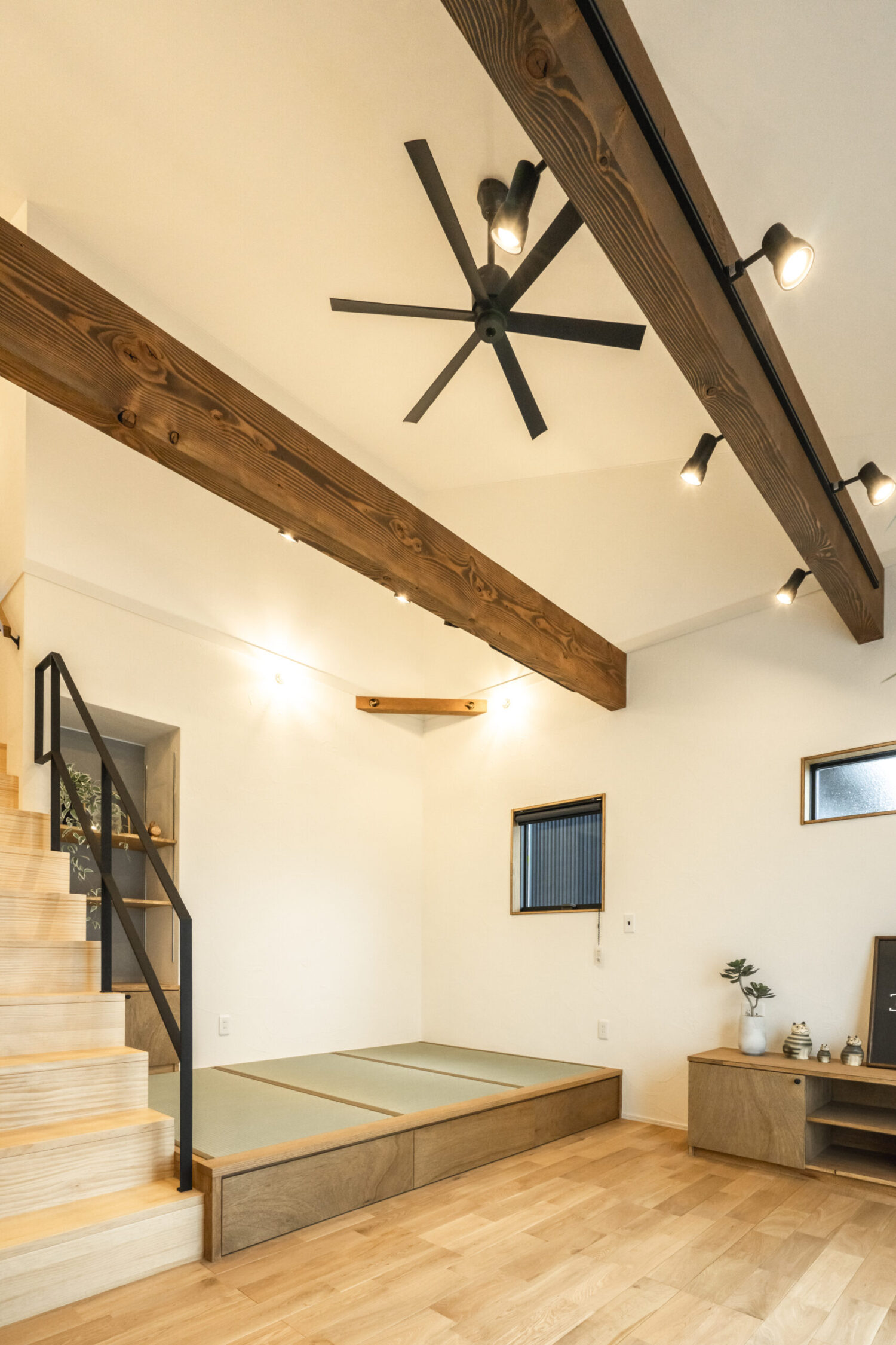 リビングにキャットウォークを設けて、猫ちゃんが楽しく過ごせる空間に。