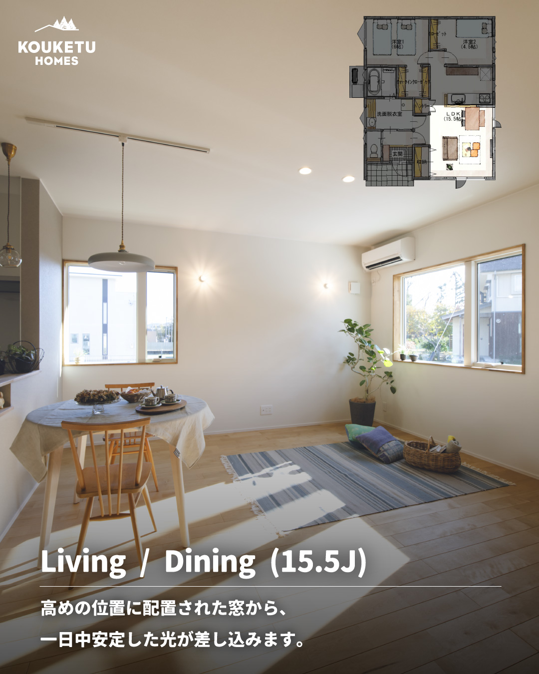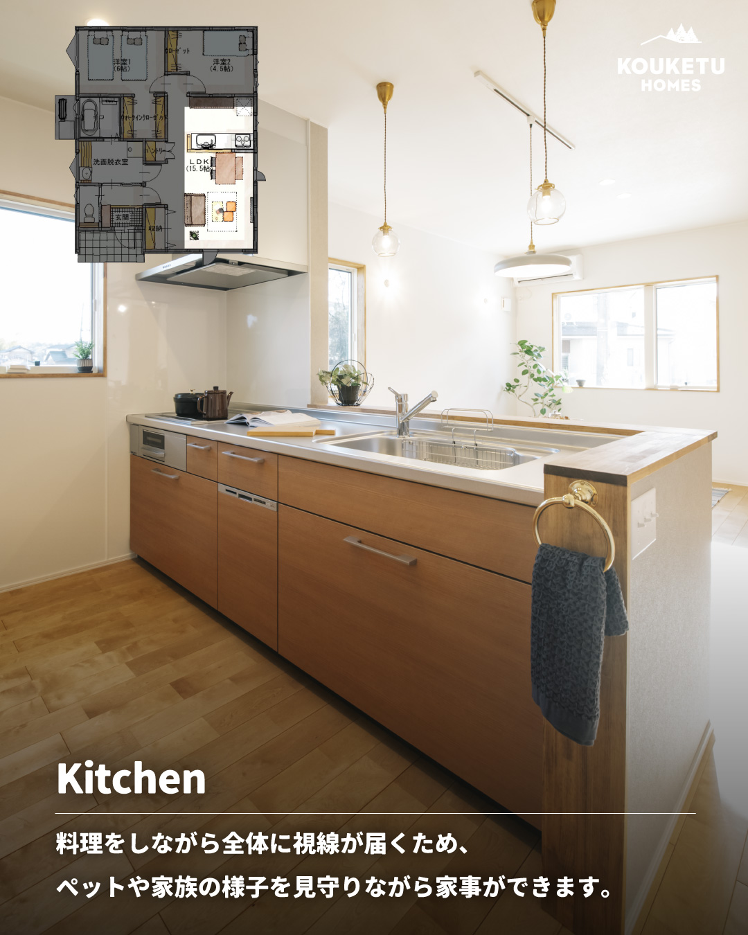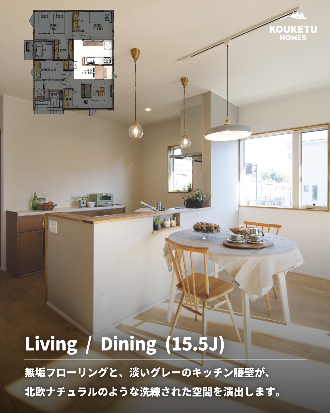 コンパクトながらも開放的なLDKは、お互いの気配を感じつつ個の時間も大切にできる距離感。
