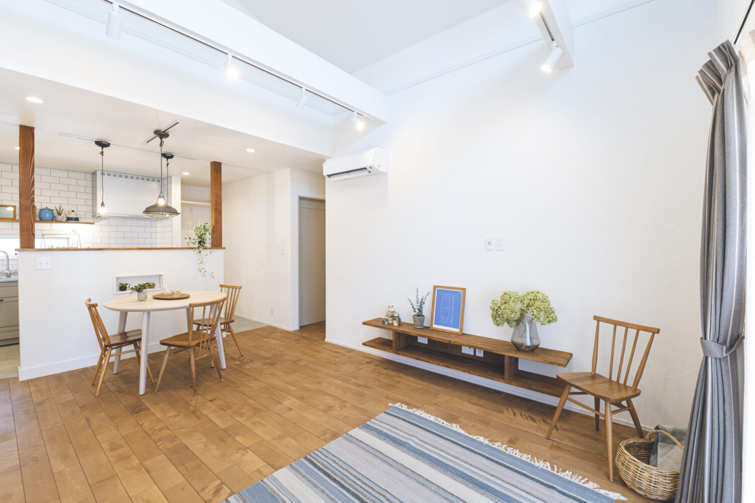 LDKには無垢の床材を採用し、自然塗料「アユーカいろは」で仕上げました