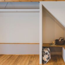半地下のような0.5階にある主寝室は、天井高が低く落ち着く空間になっています。主寝室としてだけではなく趣味のこもり部屋にも最適です。デッドスペースになりがちな階段下も収納として活用できるよう設計しました。