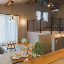 アクセントクロスが素敵な2階の居室は、天井を勾配にし梁をみせているので、より開放的なお部屋になっています。1階の居室は白を基調としたシンプルなお部屋です。