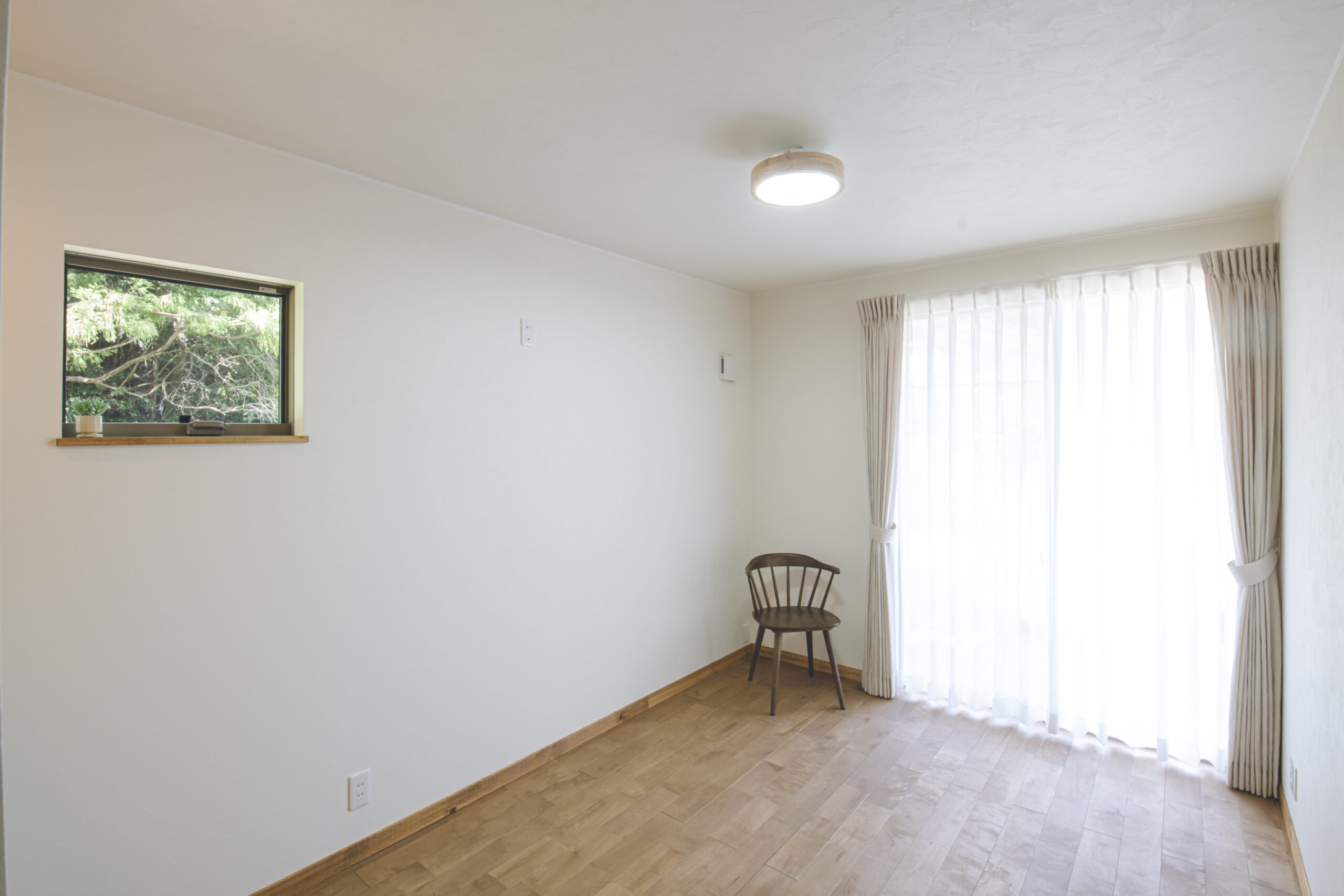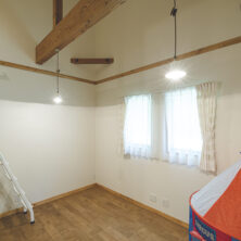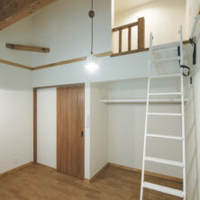 主寝室の上部に、ご主人のための秘密基地のようなロフトを設けました。趣味に没頭できるプライベート空間でありながら、窓からは周囲の豊かな自然を一望できます。家族の気配を感じつつも、一人の時間を楽しめるよう設計された、最高の眺めが広がるリラックススペースです。